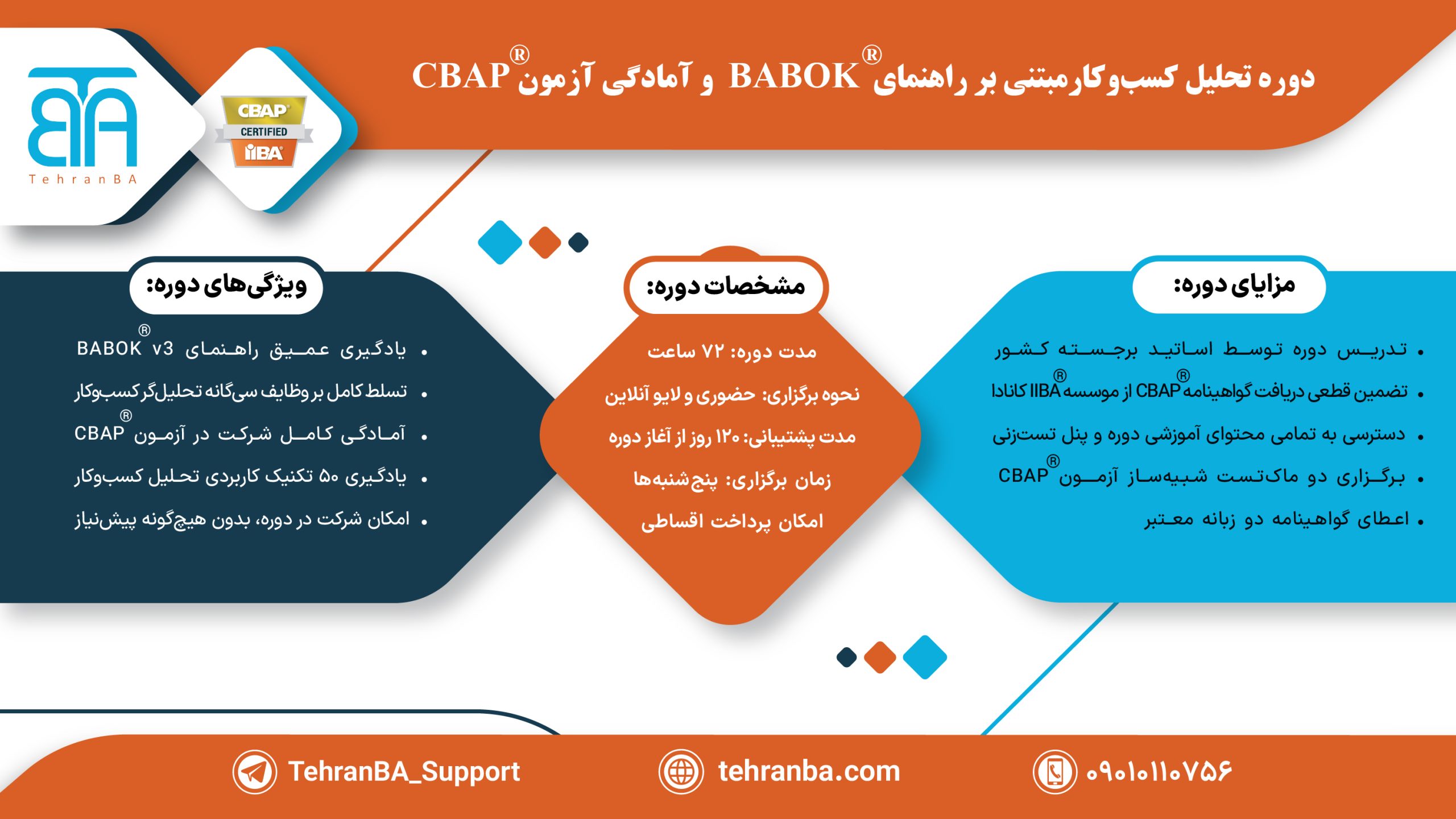 - تضمین 100 درصدی قبولی در آزمون و دریافت گواهینامه حرفهای ®CBAP از موسسه ®IIBA کانادا؛